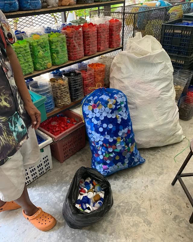 Unsere farbigen Charms entstehen auf der Insel Koh Tao in Thailand – aus Plastik, das am Strand gesammelt und sorgfältig sortiert wird. Regelmässig finden dort Beach Cleanups statt, bei denen freiwillige Helfer das angeschwemmte Material zusammentragen. Wer möchte, kann aber auch einfach seinen eigenen Plastikdeckel vom Getränk im kleinen Recycling-Shop auf der Insel abgeben und so einen Beitrag leisten.