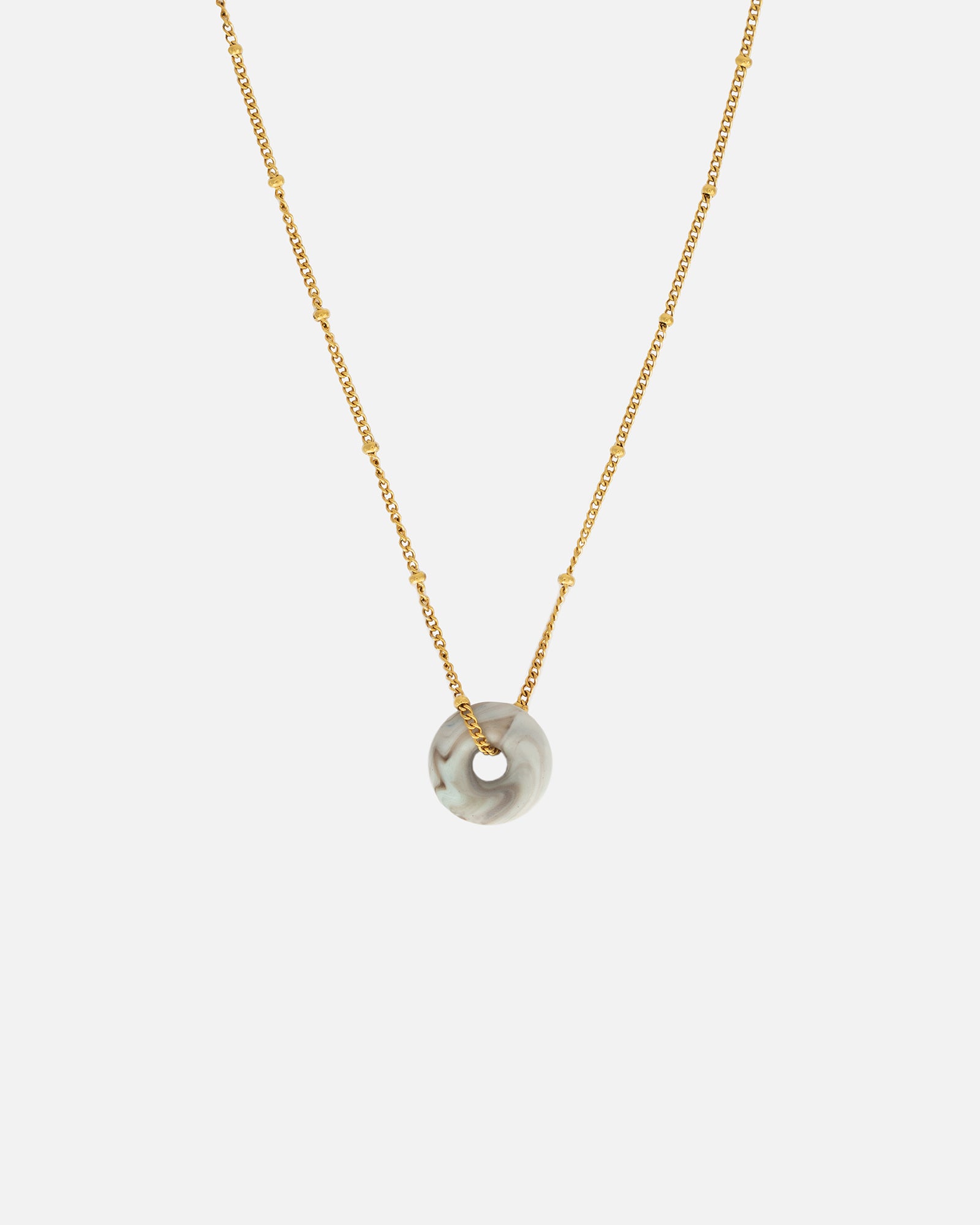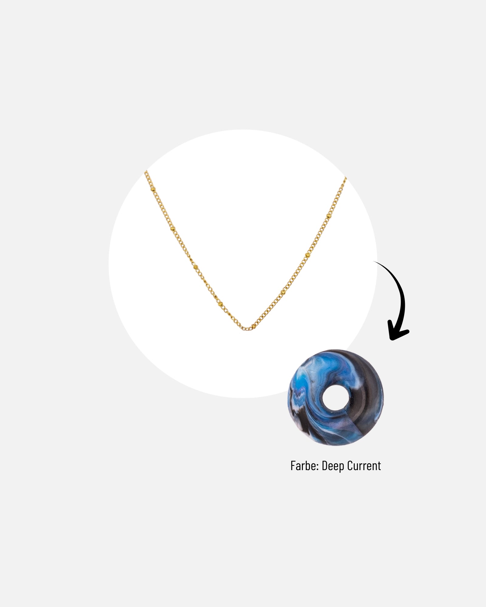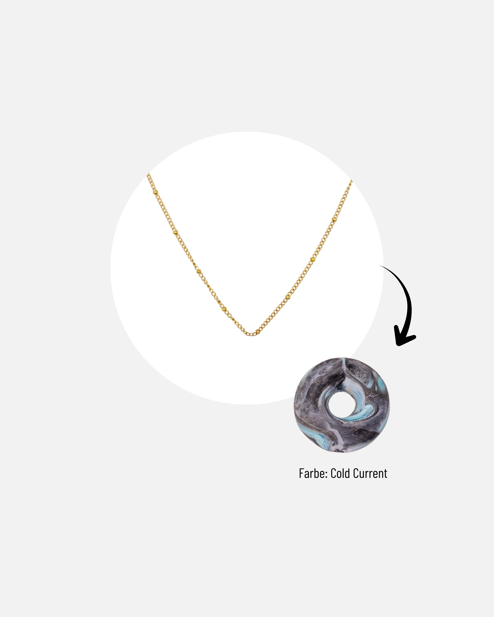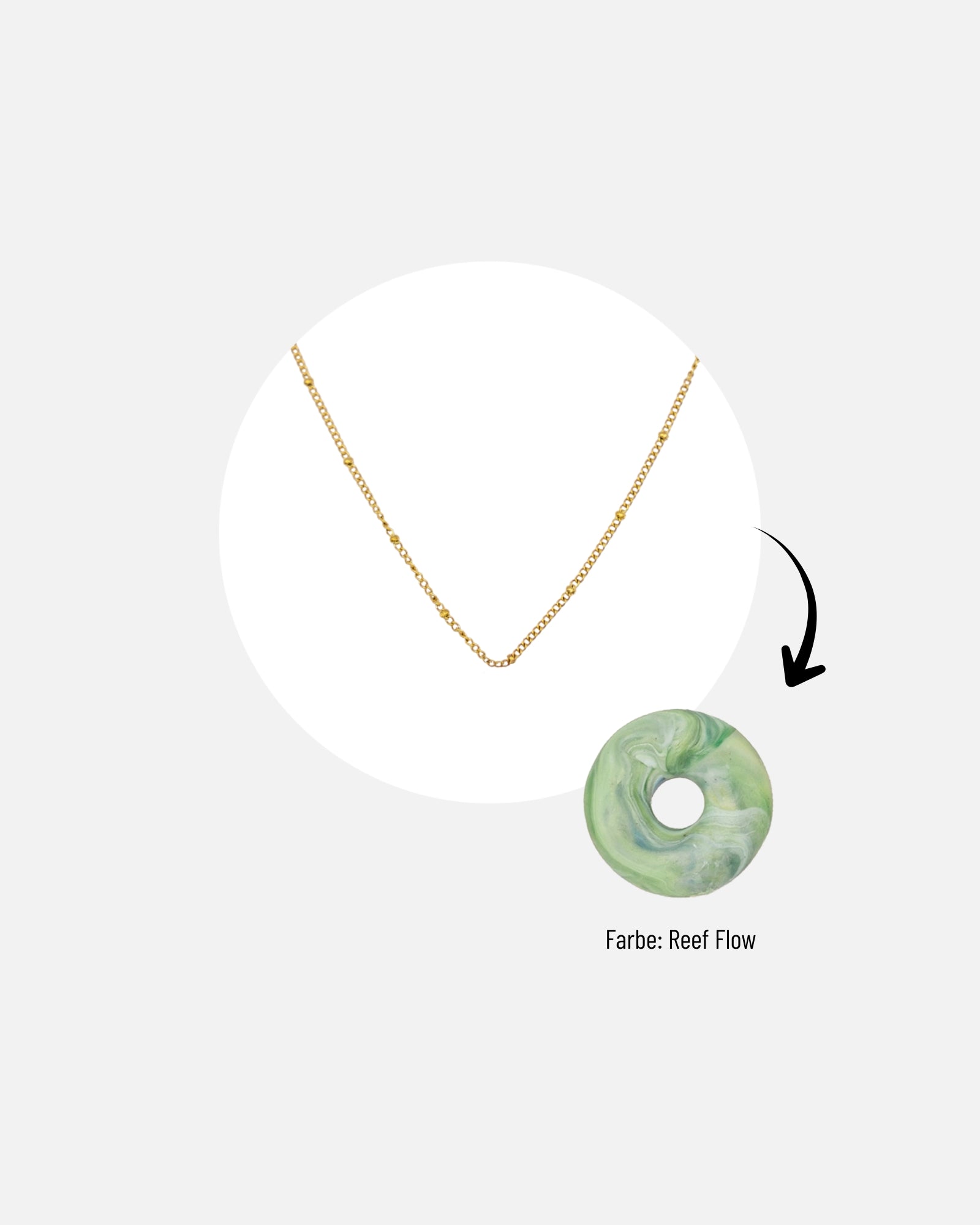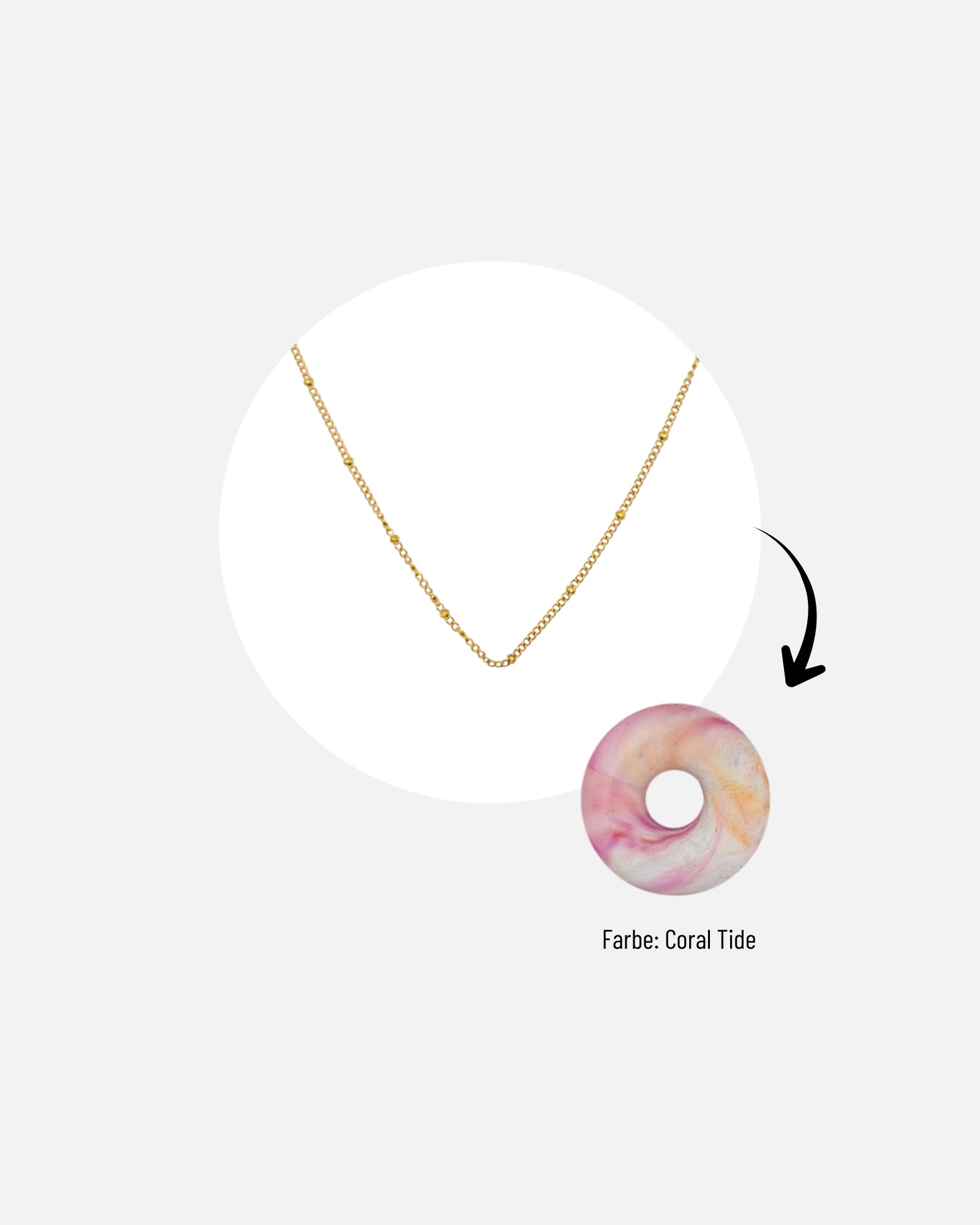Die KOHO Halskette mit Mali Charm verbindet nachhaltiges Design mit moderner Eleganz. Der Mali Charm – eine zeitlose Donut-Form – wird auf Koh Tao aus recyceltem Meeresplastik gefertigt. Jede Farbe, jedes Muster und jeder Wirbel entsteht beim Pressen individuell, sodass jede Halskette ein echtes Unikat bleibt.