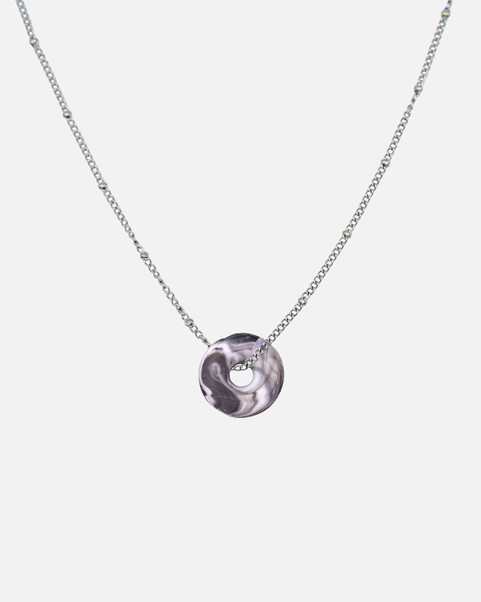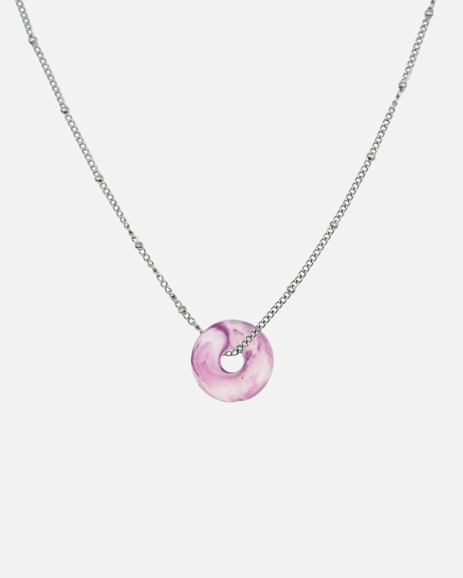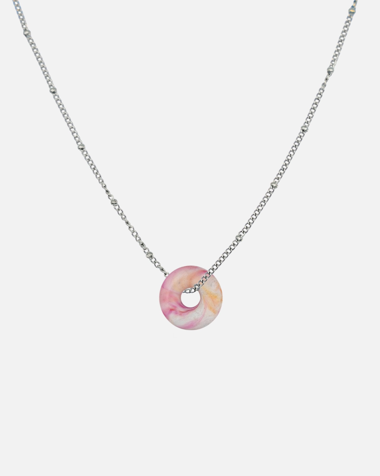 Der Mali Charm – eine zeitlose Donut-Form – wird auf Koh Tao aus recyceltem Meeresplastik gefertigt. Jede Farbe, jedes Muster und jeder Wirbel entsteht beim Pressen individuell, sodass jede Halskette ein echtes Unikat bleibt.